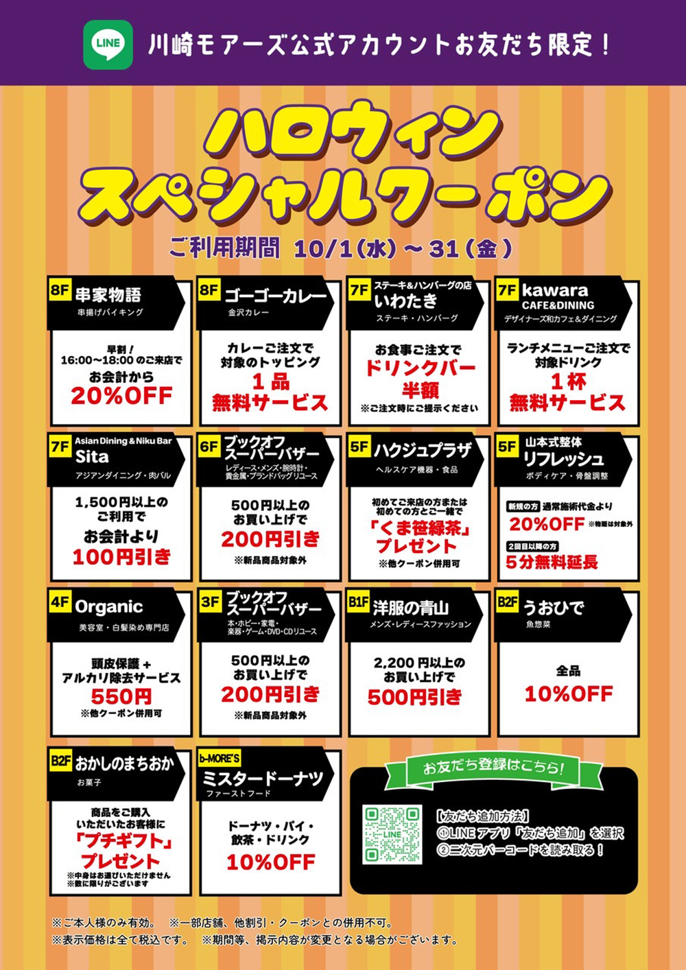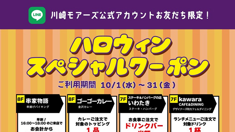 川崎モアーズ公式LINEアカウントでは10月末までの限定クーポンを配信中!