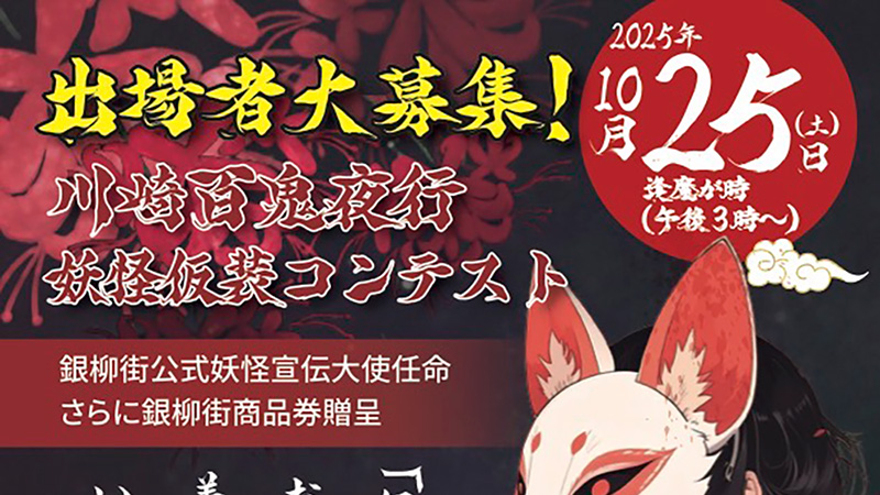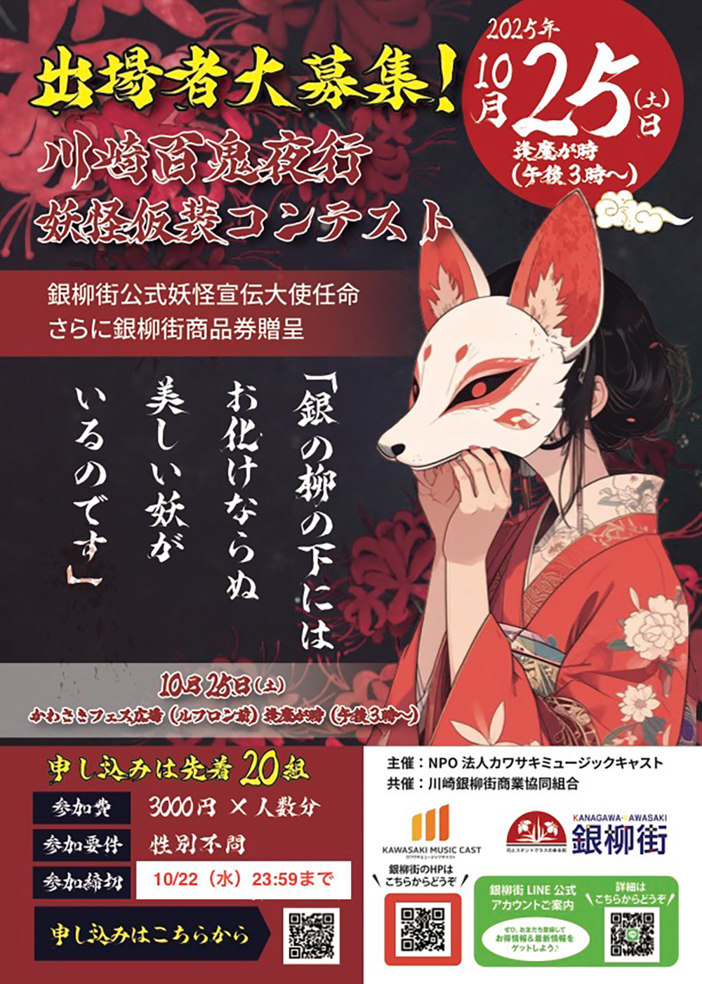 10月25日(土)に川崎駅前フェス特設ステージ(川崎ルフロン前)にて「川崎百鬼夜行妖怪仮装コンテスト」を開催いたします。