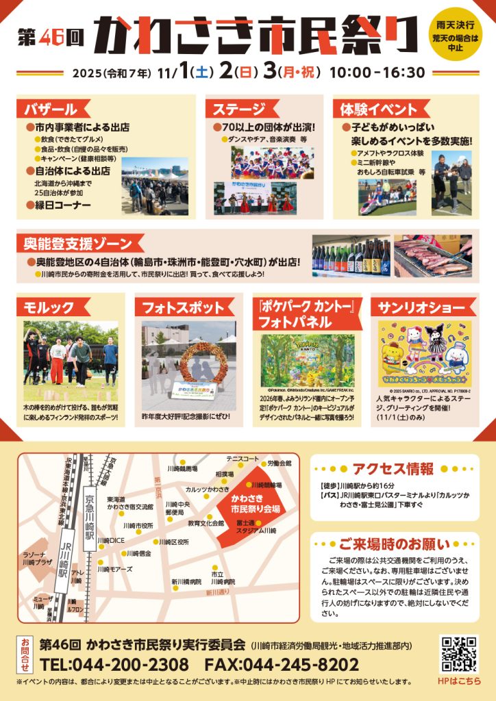 イベントの詳細やステージプログラムなどにつきましては、「かわさき市民祭りのホームページ」よりご覧ください。