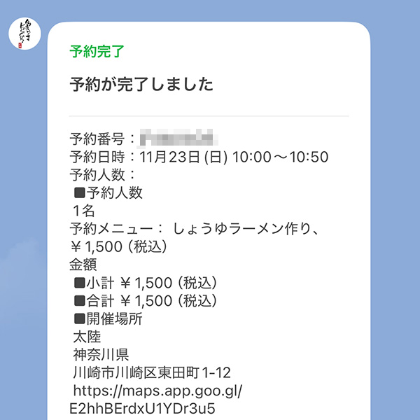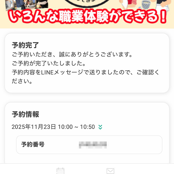 11. ご予約が完了となり、LINE公式アカウントのトーク画面にも予約完了の案内が通知されます。